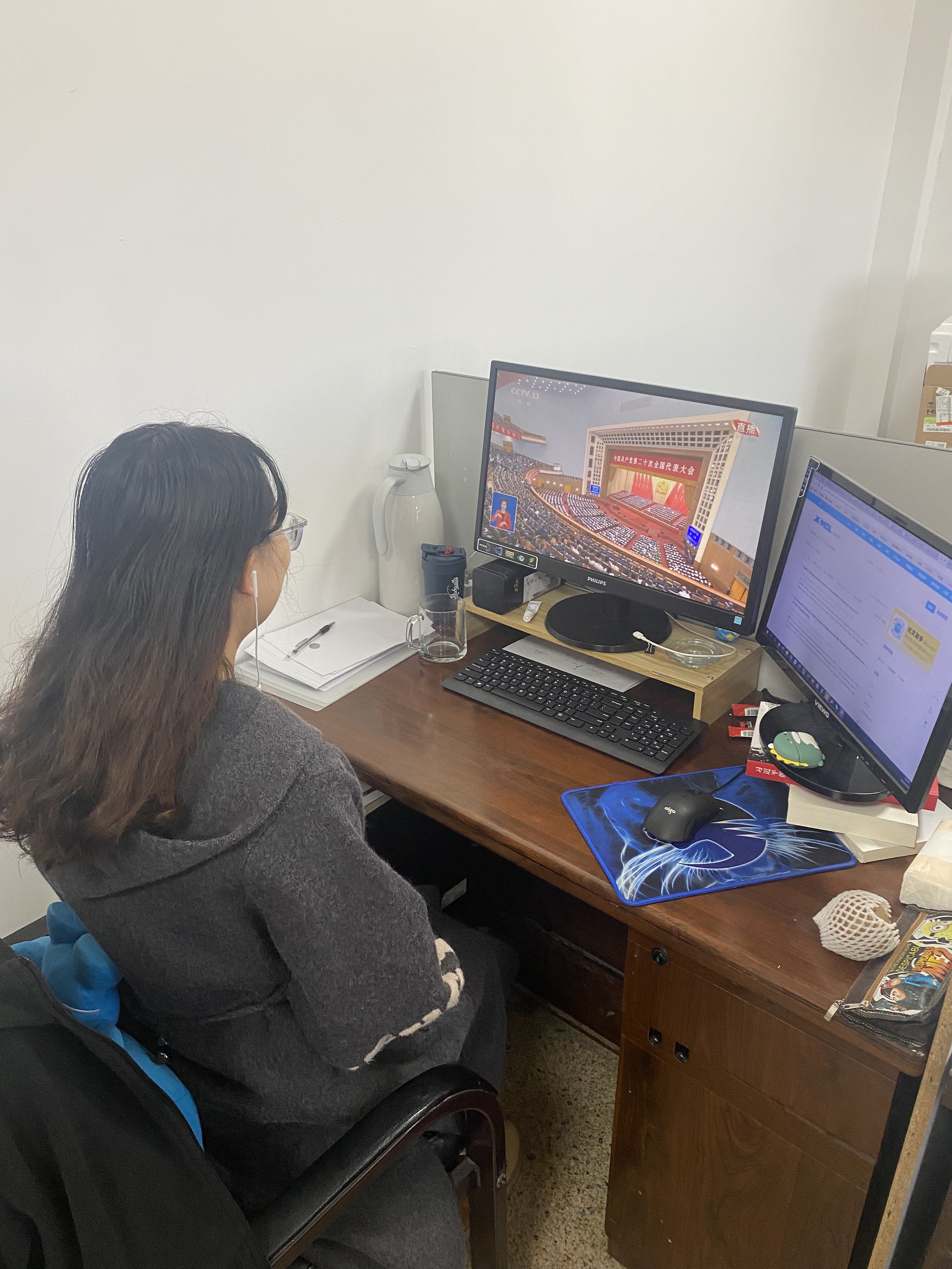 20221016日,中国共产党第二十届全国人民代表大会在人民大会堂隆重召开。上午10时,色色啦 色色啦 组织全体博士研究生党员在线观看,同学们迫不及待且自发地提前打开直播,以热烈而真挚的心迎接二十大的到来。