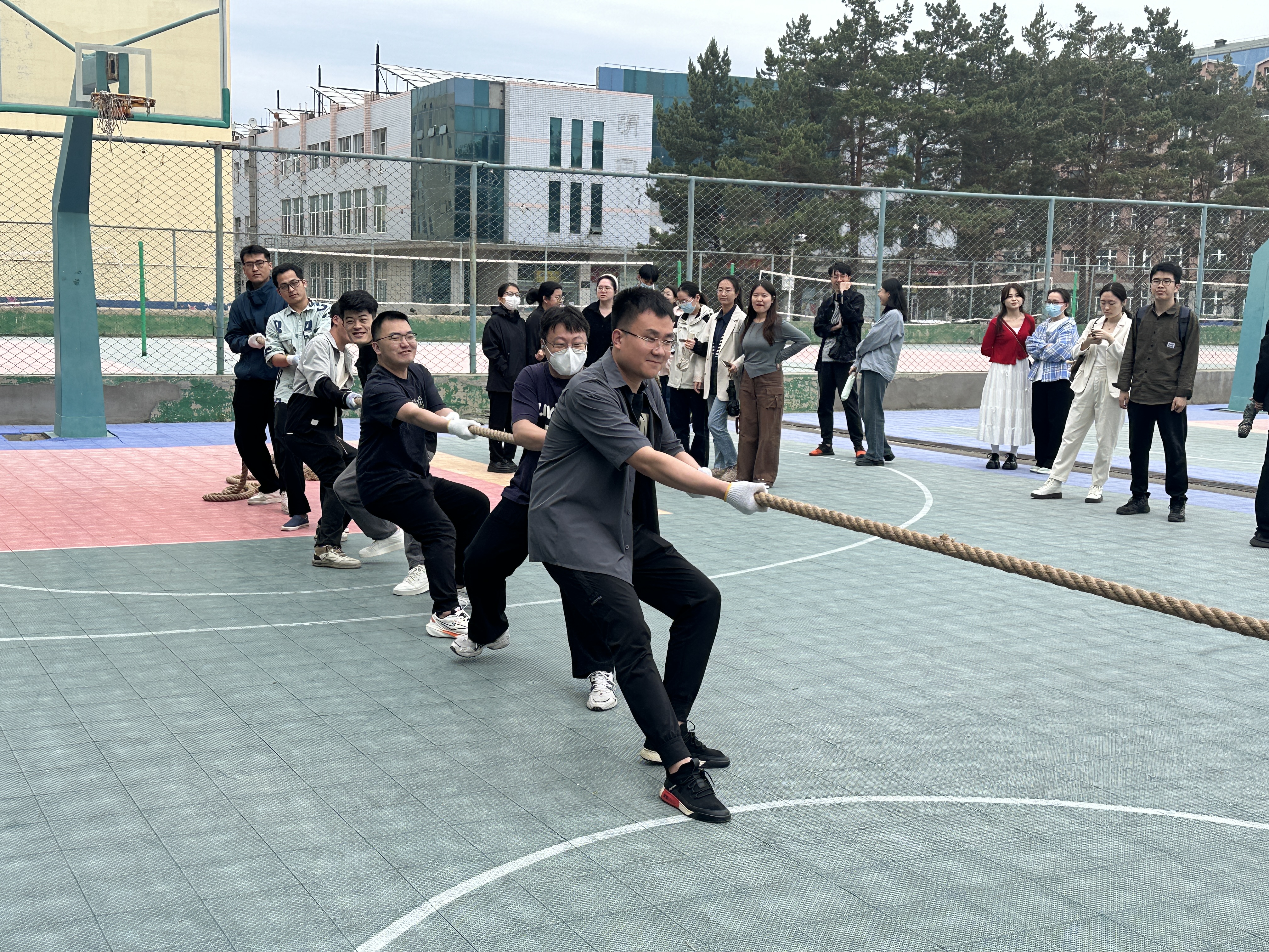 工程学院心理朋辈辅导员张潇寒进行开场,宣读活动宗旨及比赛规则,由各参赛队伍进行对战队伍的抽签,抽签结束后,比赛正式拉开帷幕。各学院代表队精神饱满地走上赛场。他们紧握绳索,脚踏实地,身体后仰,做好了充分的准备。随着裁判的一声令下,队员们齐心协力,用力拉扯绳索,试图将对方拉过中线。比赛过程中,队员们充分展现了团队协作的精神。他们相互鼓励、默契配合,共同应对挑战。