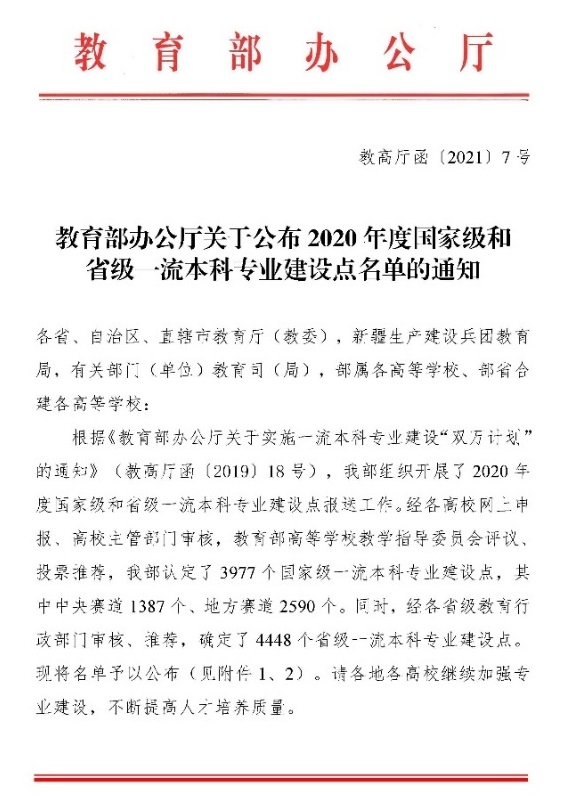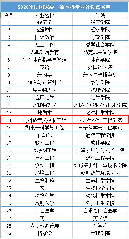2. 2020年度国家级一流本科专业建设点:材料成型及控制工程,教育部办公厅,2021.02.10