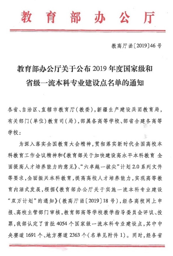 1. 2019年度国家级一流本科专业建设点:材料物理,教育部办公厅,2019.12.24